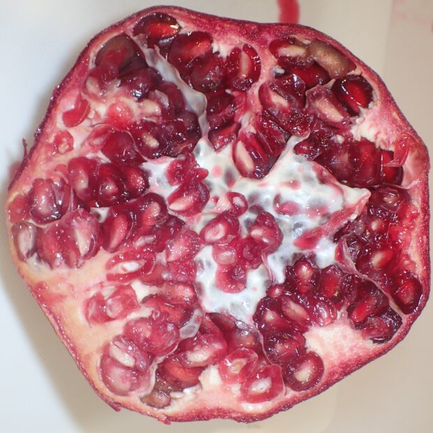 ゼリー状の皮に包まれた種は、 まるごと食べると健康や美容に効果があると言われています。 またゼリー状の皮から採れるグレナディンという赤色成分は、 香料や着色料として広く使われています。