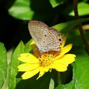 南国のシジミチョウ、 クロマダラソテツシジミがやってきます。 分散力が強く、 夏~秋、 関東でも見られることがあります。 幼虫はソテツの新芽や若葉を食べ、 葉を茶色くします。