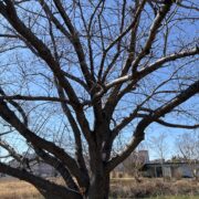 広い場所で成長すると太い枝を横に伸ばしてがっしりした樹形になります。