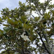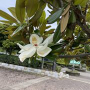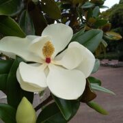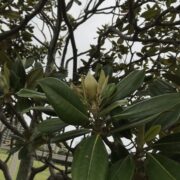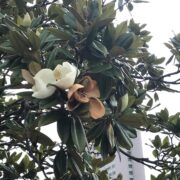 日本にはいってきたのは明治6年。 その時に大きな花と堂々とした木の姿から「大山木」⇒「泰山木(タイサンボク)」と名付けられました。