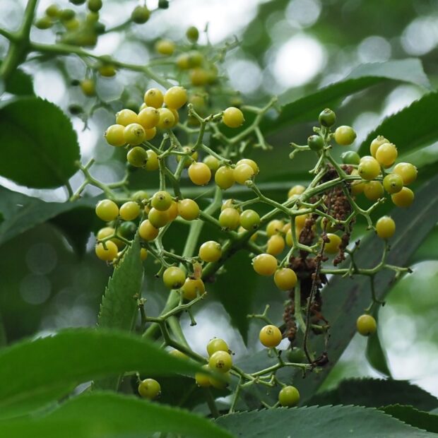 別名「接骨木(せっこつぼく)」は、 ニワトコの樹皮が骨折を治療するための湿布材に使われたことからきています。