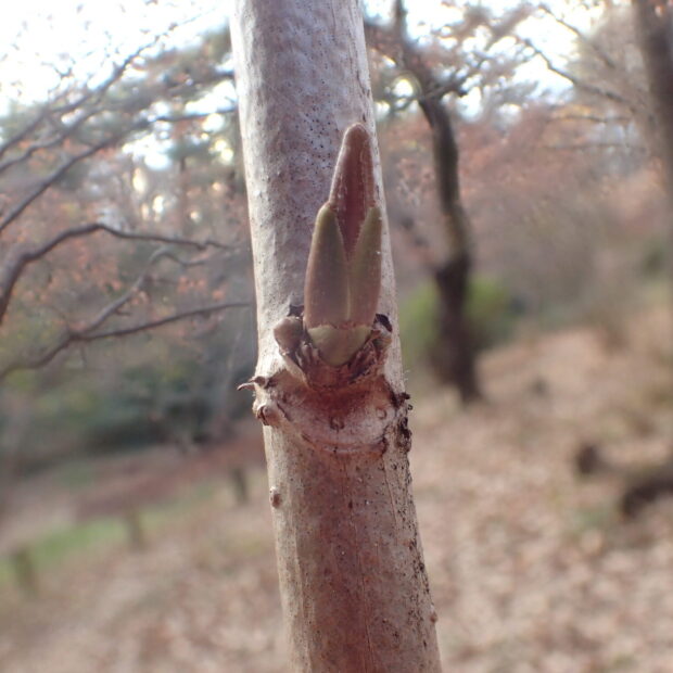 • 大きな冬芽は冬枯れの森でとても目立つ