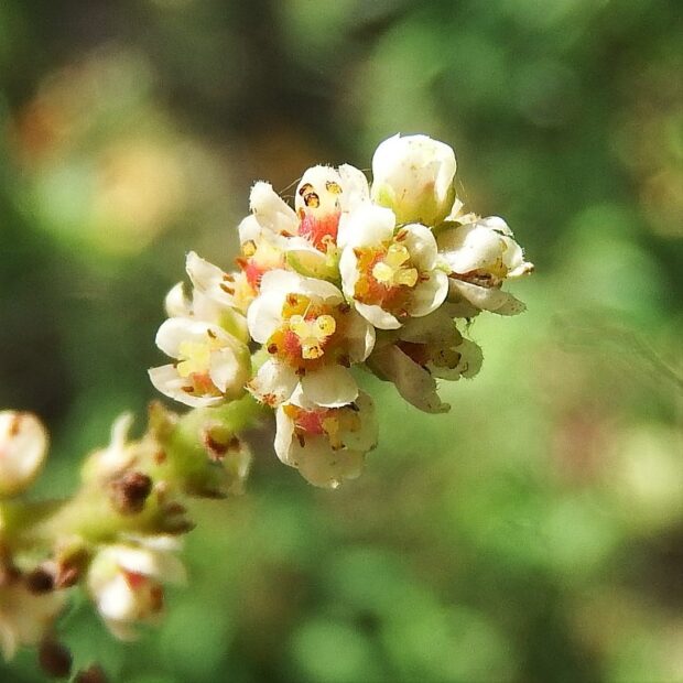 ヌルデは虫や鳥に人気のある木。 花には、 蜜と花粉を食べに、 ハチ、 ハナアブなど多くの昆虫が集まります。