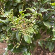 花や葉がよく似ているトウネズミモチより成長がゆっくりで背が低いです。