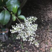 初夏に枝先に香りのよい白い小さな花を一度に沢山咲かせます。 似た花を咲かせるトウネズミモチよりも花は1か月ほど早いです。