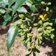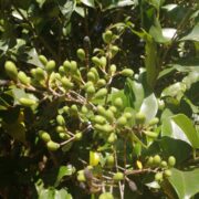 楕円形の実を沢山つけます。 10~12月頃、 黒紫色に熟します。 熟した実は日干しして漢方薬に使われ、 コーヒーの代用にもなります。