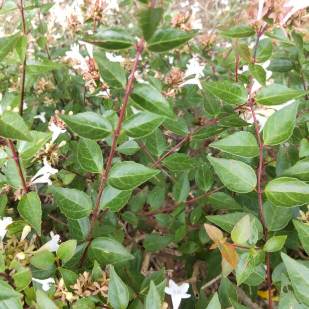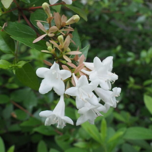 中国原産のアベリア・シネンシスとアベリア・ユニフローラを掛け合わせた栽培品種で実はなりません。