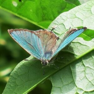 折りたたまれて餃子のようになった葉があったら、 それはミドリシジミの幼虫の巣かもしれません。