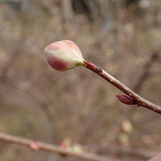 花芽は茶色で卵形のぷっくりした冬芽が付きます。