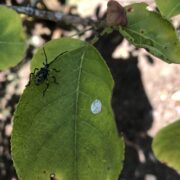 マユミの実は、 キバラヘリカメムシの大好物。 卵、 幼虫、 成虫が同時に見られることがありますので、 探してみてください。