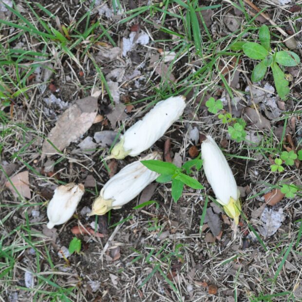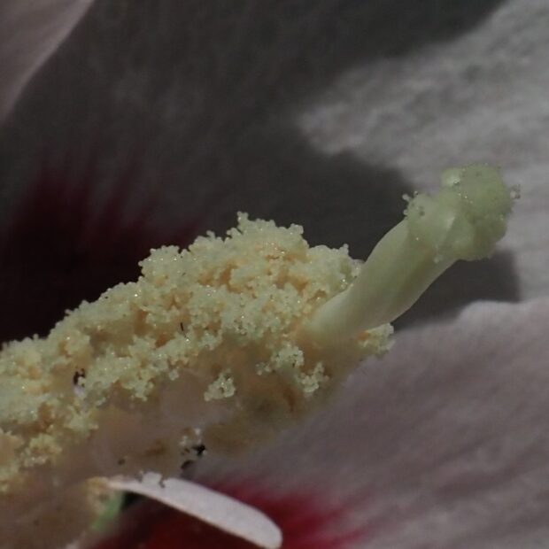 • 雄しべからつぶつぶの花粉が出てくる。 雌蕊の先端には花粉のつぶつぶがついているのが見える