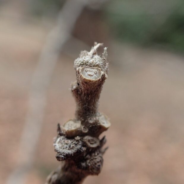 細い灰色の枝。 剪定されることが多く、 太い幹になることはありません。