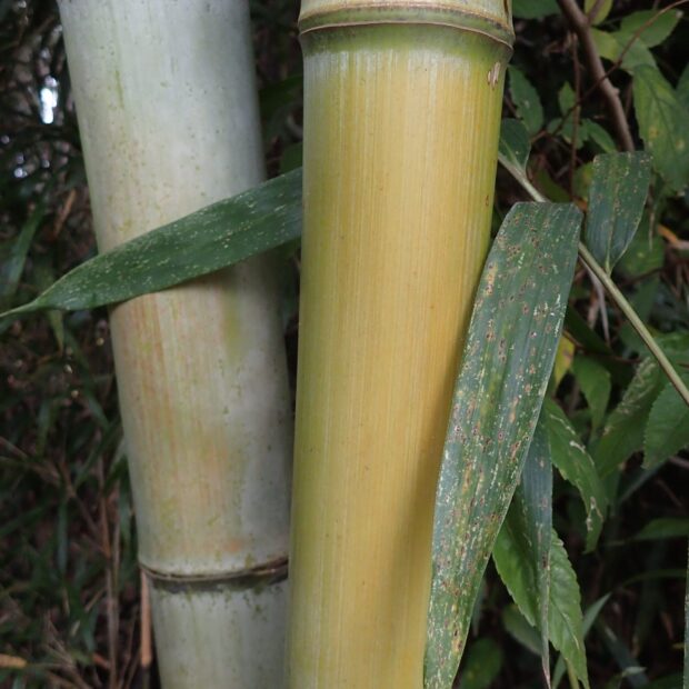 約250年前薩摩藩によって中国から日本に持ち込まれた日本最大の竹です。 稈は太く、 大きく枝を張って育ちます。 にお店に出回っているタケノコの大部分はモウソウチクです。