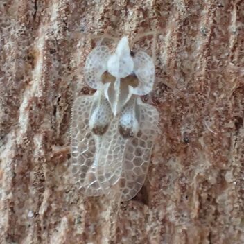 春~秋は葉裏、 秋~春は樹皮をめくってプラタナスグンバイを探してみましょう。 虫メガネで見るとガラス細工のようなきれいな虫です。