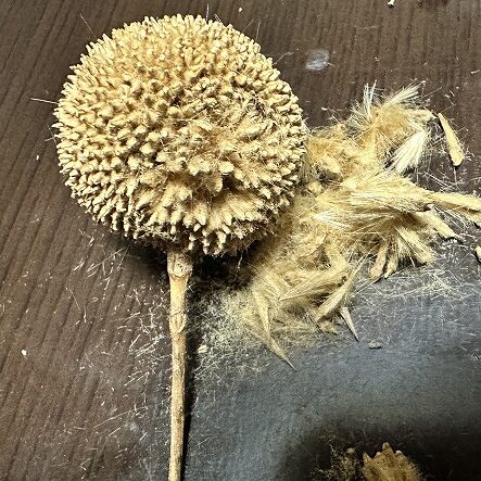 アメリカスズカケノキの実は1つ(まれに2つ)ぶらさがります。 (モミジバスズカケノキは、 何個かつらなって実ることが多い。 )