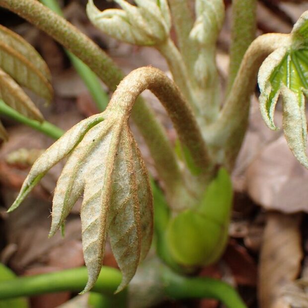 • 若葉は茶色い毛に被われているが大きくなるに従い毛が無くなる