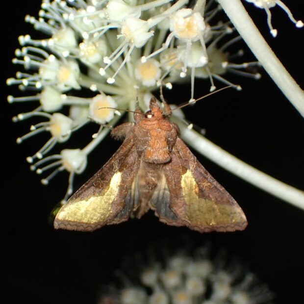 手のひら状に八つに分かれるから八手(=ヤツデ)?と思われがちですが、 実際には切れ目の数は様々で、 7つや9つのように奇数に分かれていることが多いです。 寒い季節に咲く花は、 成虫で冬を過ごす生き物の数少ないレストランです。