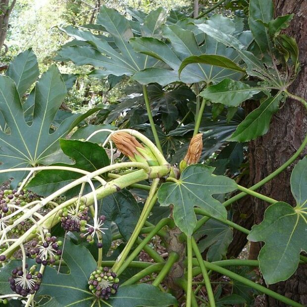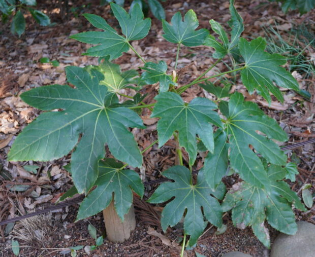 漢字表記の「八手」の八は数が多いという意味があるといいます。 実際は葉の切れ込みは5〜11と様々です。