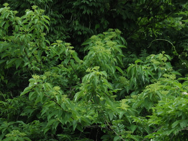 ミズキとそっくりな花ですが、 1か月ぐらい遅く咲きます。