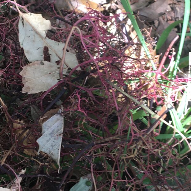 ミズキの仲間は、 樹液が多く、 春先に枝を切ると樹液が落ちます。 その樹液が発酵してピンクやオレンジになっていることもあります。 これは樹液酵母です。 そこに虫が集まります。