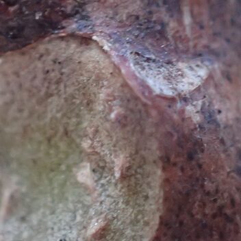 灰色の樹皮に皮目(空気の出入り口)がたくさんみられます。 樹皮だけなら、 ケヤキの若木に見えることもあります。 枝が同じ高さから複数出るので、 枝の痕が並び、 顔に見えることがあります。