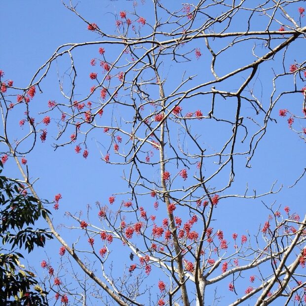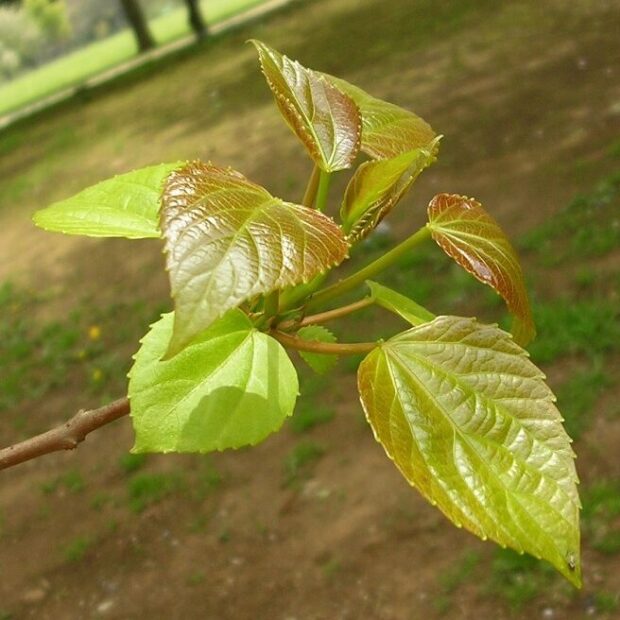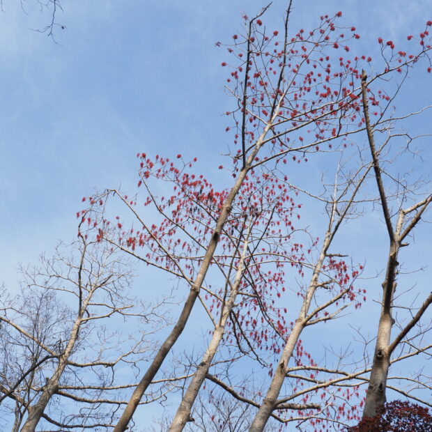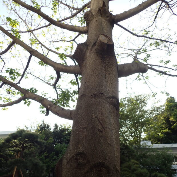 生長が早く、 いち早く良い場所を占有しようと長い枝をぐんぐん伸ばし、 大きな葉を広げます。 そのため枝と枝の間が大きくて、 ざっくりした印象になりますが、 枝の伸ばし方には規則性があり、 意外と几帳面な木なのです。
