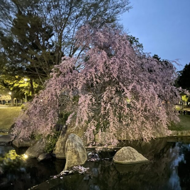 • 東京都六義園のシダレザクラ。 関東平野ではソメイヨシノより少し早く見頃を迎える。