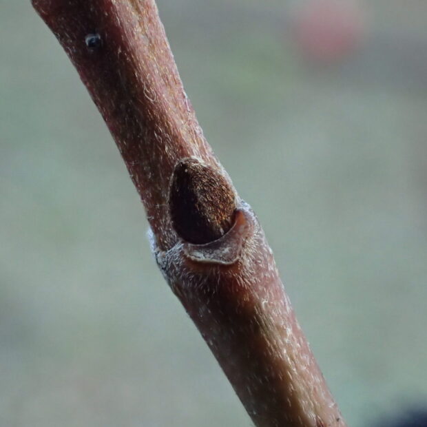 • 枝先より下の芽は小さめ。 この葉痕は、 静かな表情