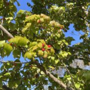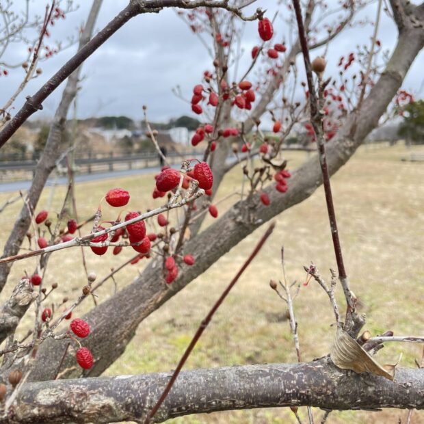 ヒヨドリ、 オナガ、 メジロなどが実をついばみます。