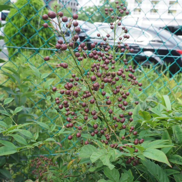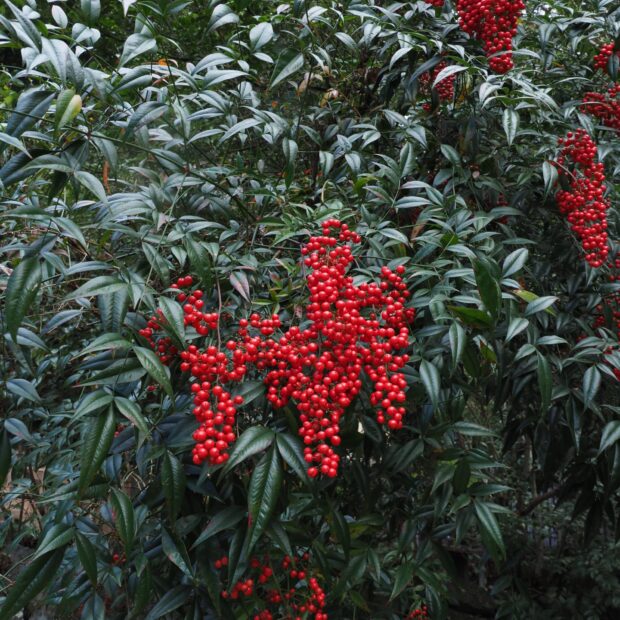 「難を転じる」に通じるとして、 縁起の良い植物として知られています。 実際に、 薬用成分を含んでいて、 枝葉には殺菌、 殺虫効果が、 果実は咳止めとしても知られています。 ですが、 実は有毒植物でもあります。 安易な利用は避けましょう。
