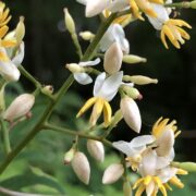 初夏、 茎の先に白い小さい花が房状に集まって沢山咲きます。