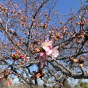 花の色がソメイヨシノなどより濃いことや花期(1か月程度)が比較的長いこと、 2月下旬から咲き始める早咲きであることから人気が高く、 最近多くの場所で植えられるようになりました。 開花期にはニュース番組で「一足先に咲き始めました・・・」と報道されます。