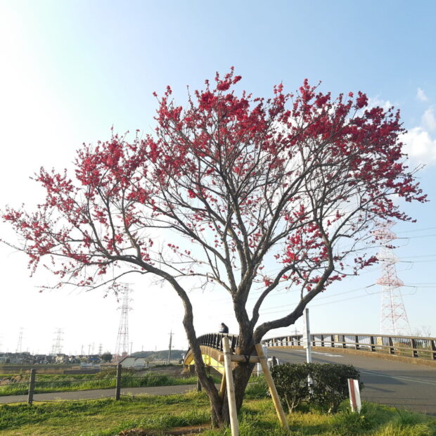 4月中旬~下旬ごろに咲きます。 濃い桃色の花弁が細い八重咲の花が「菊」のようです。 そのため「菊咲き」と呼ばれます。 枝が見えなくなるほどまで咲くところは見ごたえがあります。