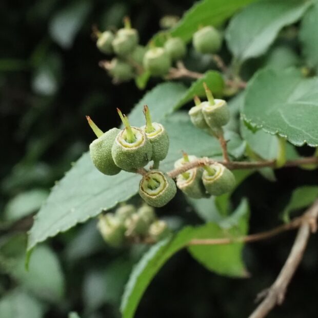 初夏に白い花が木全体に咲きます。 ウツギの花が谷を真っ白に染める風景は、 日本の本州を代表する風景です。 別名ウノハナ。 「夏は来ぬ」の童謡にも歌われています。 また旧暦4月の名前「卯月」は、 卯の花の咲く月という意味です。 畑の境界線にも植えられ、 人々の生活にとっても身近な木でもありました。
