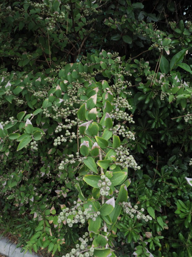5~7月に白い花を房状にたくさんつけます。 花びらは5枚です。