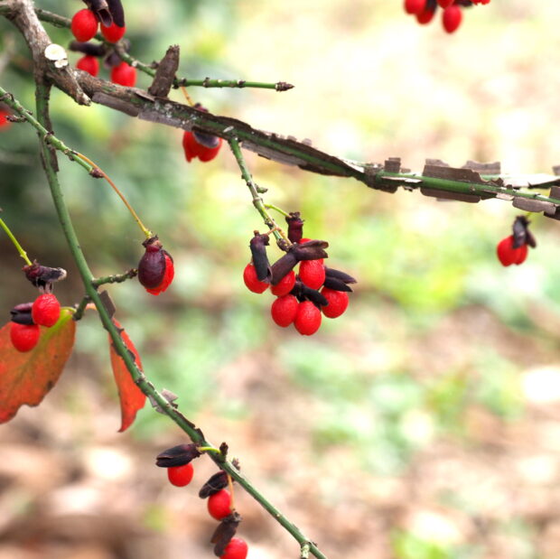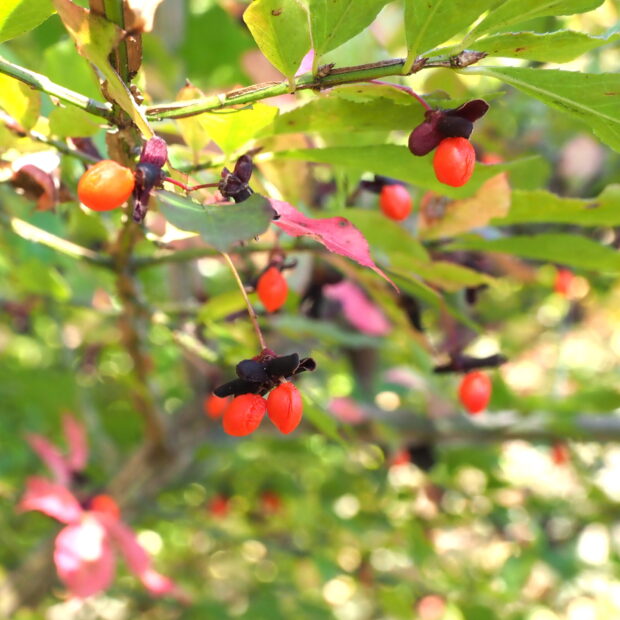 ニシキギという名前は秋の紅葉が真っ赤で美しい様子を鮮やかな織物にたとえたことから付きました。