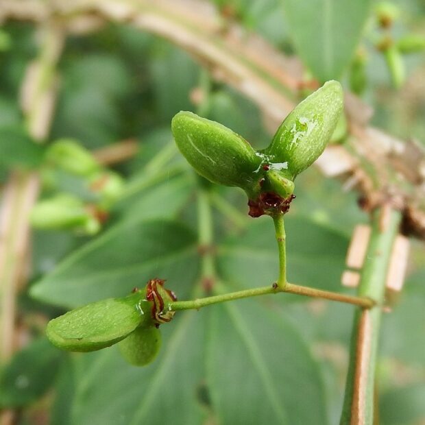 若い枝は緑色で四角く角張っていて、 角の上には薄い板状の翼があります。