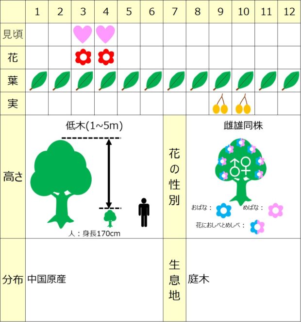 江戸時代に中国から渡来し、 神社などによく植えられます。