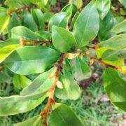 葉は互生。 葉の長さは4~8㎝で長楕円形です。 縁はやや波状になっています。