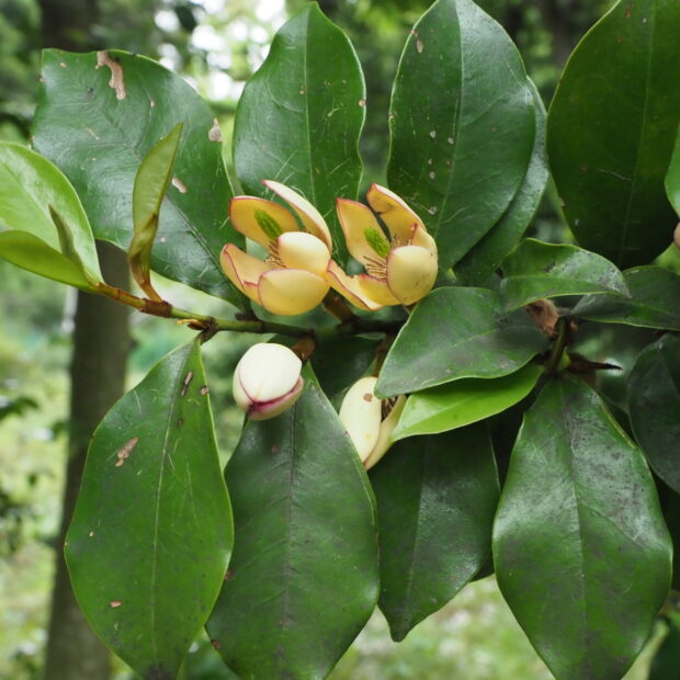 モクレンと同じ仲間で花の構造は原始的。 蜜は出さず花粉と香りで虫を引きつけます。