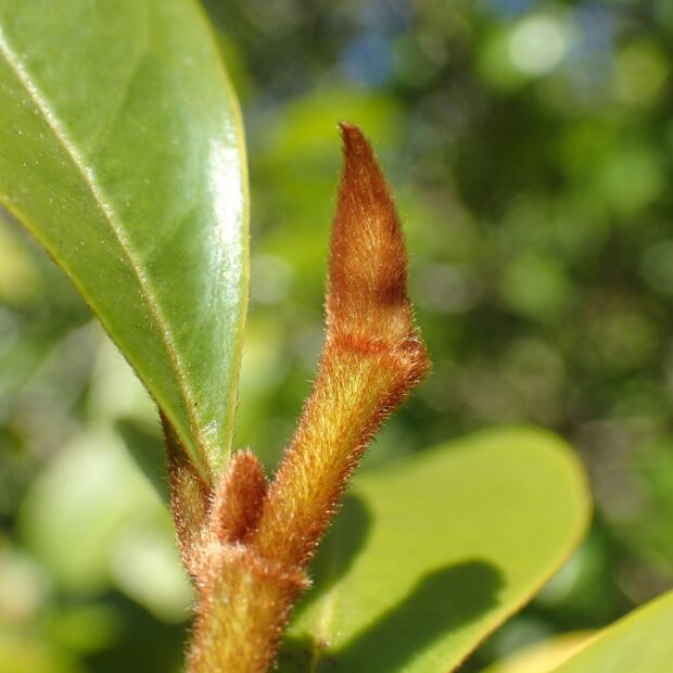 • 先端の葉芽。 赤茶色の毛で覆われている