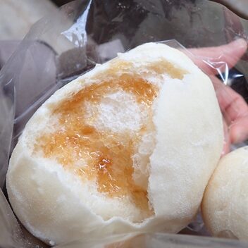 • パンにかけてがぶっ!うまーい‼