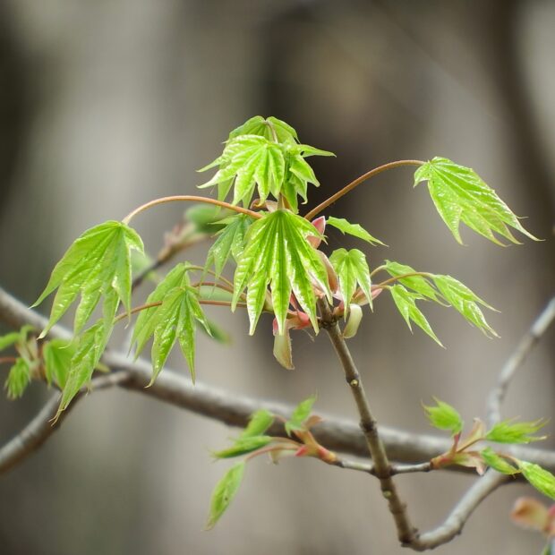 • 若葉は緑色のグラデーションがきれいでキラキラ光る