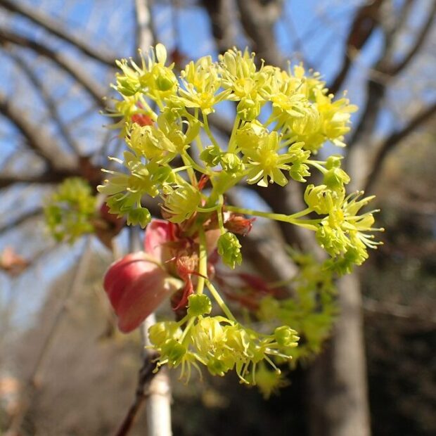 4~5月ごろ、 黄緑色の花がたくさん咲いて、 木の全体が淡い黄色に見えることもあります。