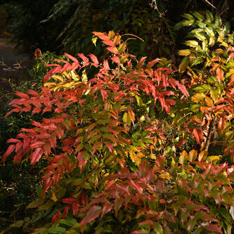 高さ3mくらいまで大きくなります。 遠目から見ると葉の広がり具合がナンテンに似ています。