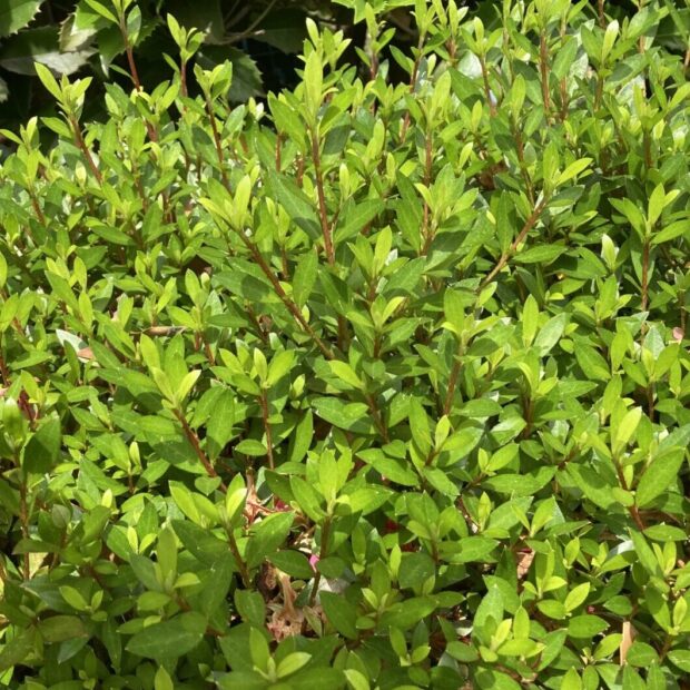 高さ1mくらいまで大きくなります。 根元から枝をたくさん出して横にも広がり半球状になります。 刈り込みに強いので、 公園や街路樹では高さを低くして育てられることが多いです。