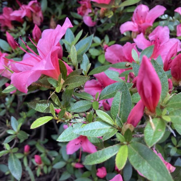 刈り込みに強く、 乾いた場所でも湿った場所でも丈夫に生きる強い木なので、 公園や街路でよく見かけるサツキツツジですが、 そもそもは他の種との生存競争をあきらめて、 他の木が生えられないような渓流のそばの岩場で健気に生きてきた木です。 その結果、 時に激流に飲まれてもやり過ごせるような逞しさを身につけました。