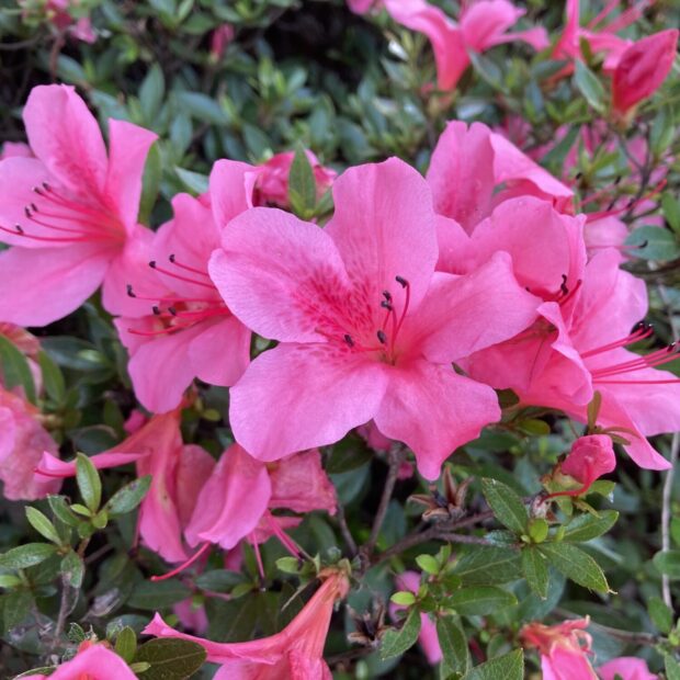 ツツジの仲間の中でも花の時期が遅く、 旧暦の5月ごろ(現在の6月ごろ)に咲くため五月(さつき)ツツジと呼ばれます。