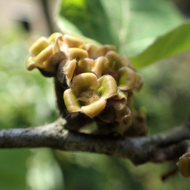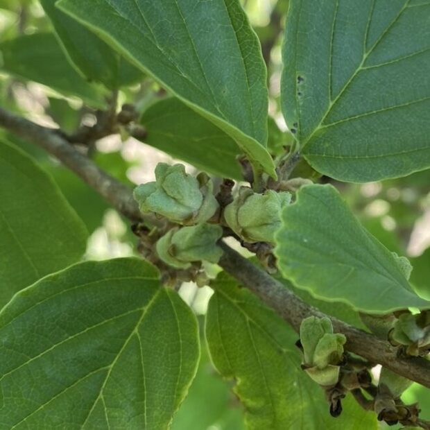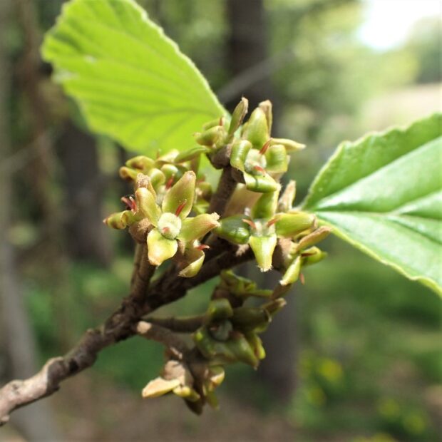 早春にイソギンチャクに似た黄色い花を咲かせます。 ふちが波打ちひし形の葉っぱも個性的ですが、 実も折り紙で作った紙風船に似ていて、 とにかくユニークな日本固有種の木です。