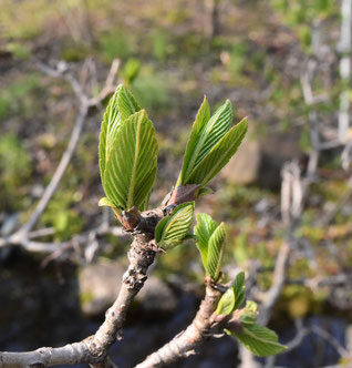 冬芽を包む芽鱗は4枚あります。 外側の2枚は早く落ちてしまいますが、 内側の2枚には毛があり、 大切に新芽を守ります。